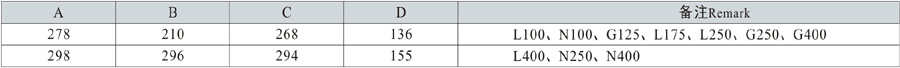 ⅡB類和增安型尺寸見下表(ⅡB Group safety-increased dimension as follow)