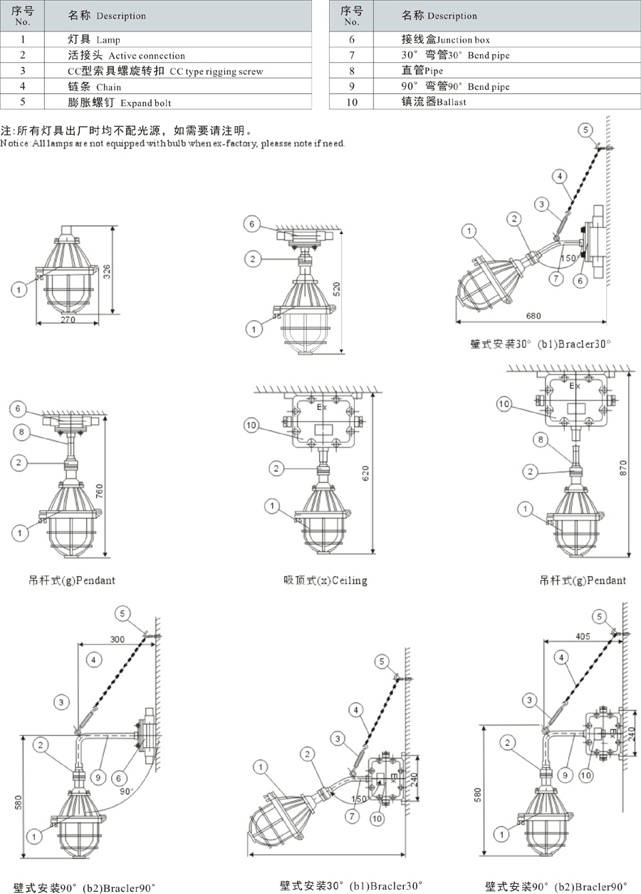Notice:Can be install lamp cover according to user's requitemnt.