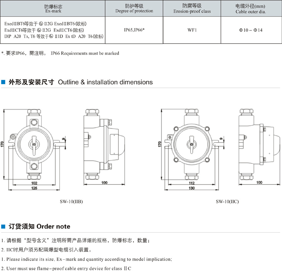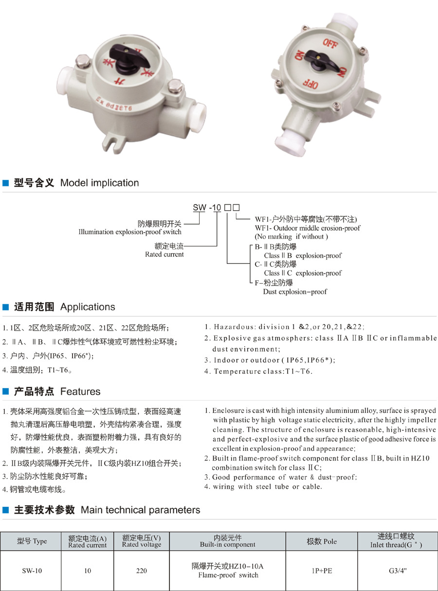 SW-10系列防爆照明開關(guān)